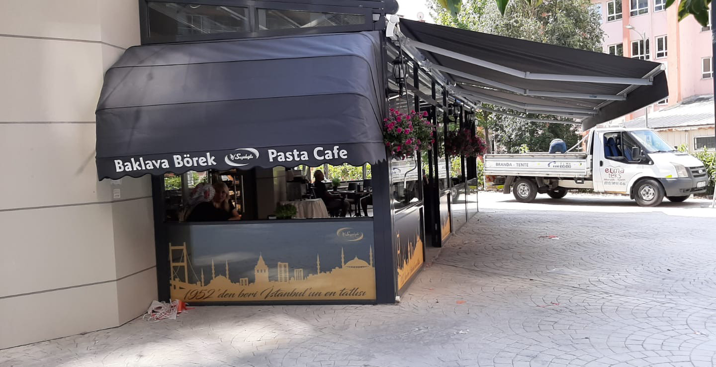 Körüklü Tente demir profil üzerine akrilik kumaş veya branda montajı ile işlemler tamamlanır.